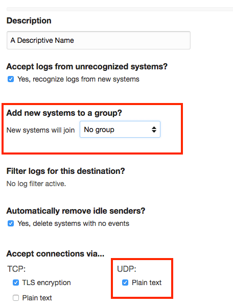 One listener is okay for something simple, but it’s well worth it to create multiple log destinations that dump systems in certain groups as they come online. This is especially helpful with immutable infrastructure where systems are not unique and hard to managed by name.